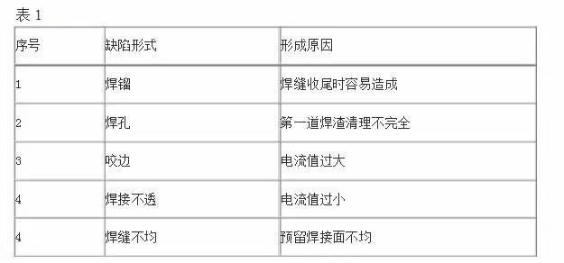 桿件鋼管與封板或錐頭焊接時(shí)可能出現(xiàn)各種形式的質(zhì)量缺陷,如焊鎦、焊孔、咬邊、焊接不透、焊縫不均勻等,應(yīng)針對(duì)不同的缺陷分析原因,再根據(jù)形成的原因逐個(gè)整改。經(jīng)過實(shí)踐總結(jié),形成以上質(zhì)量缺陷的主要原因如表1: