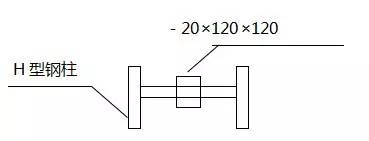 為保證鋼柱準(zhǔn)確、牢固地放在基礎(chǔ)中的預(yù)埋φ30“中筋”上,在H型鋼柱底部焊接增加一塊厚度20的鋼板,如下圖。