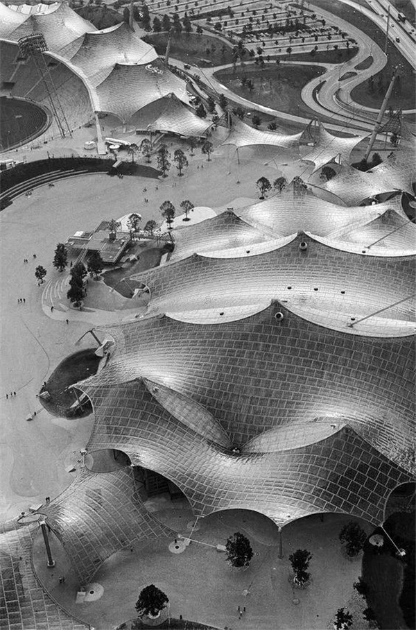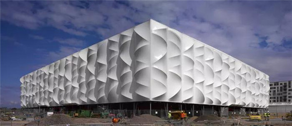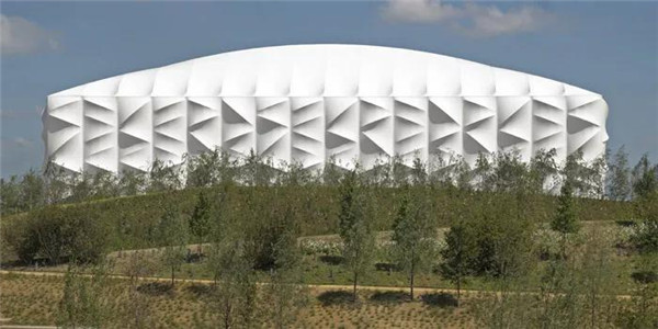 ▲ 倫敦奧運(yùn)會(huì)籃球館,可回收PVC膜在后面的結(jié)構(gòu)的作用下形成優(yōu)美的起伏