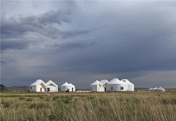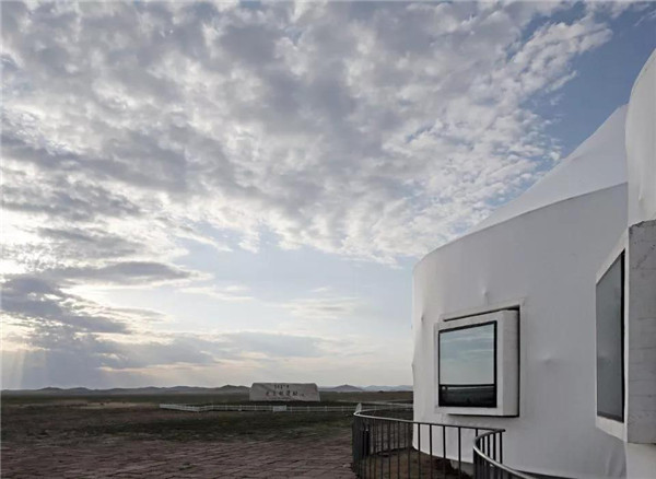 元上都遺址工作站位于元上都遺址之南,建筑形體朝向外側(cè)的連續(xù)弧形界面,罩以白色半透明的PTFE膜材,為建筑提供了必要保溫的同時(shí),又能引發(fā)蒙古包的聯(lián)想,帶來(lái)草原上臨時(shí)建筑的輕盈感,從而最大限度的降低對(duì)遺址環(huán)境的干擾。