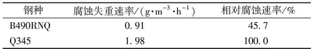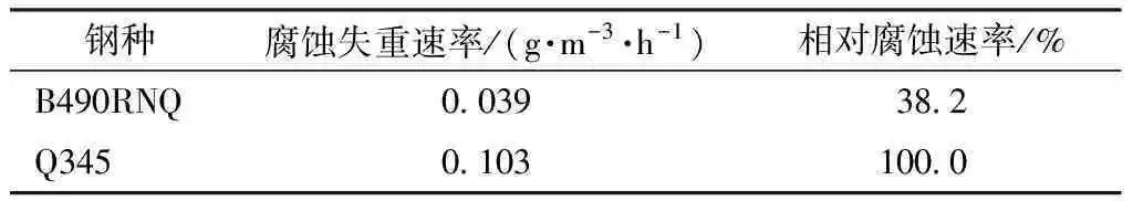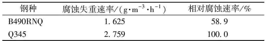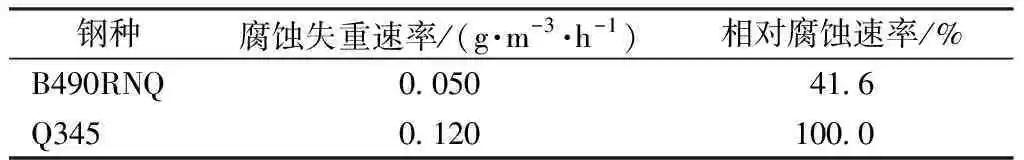 表7 耐候鋼耐腐蝕性能試驗數(shù)據(jù)比較