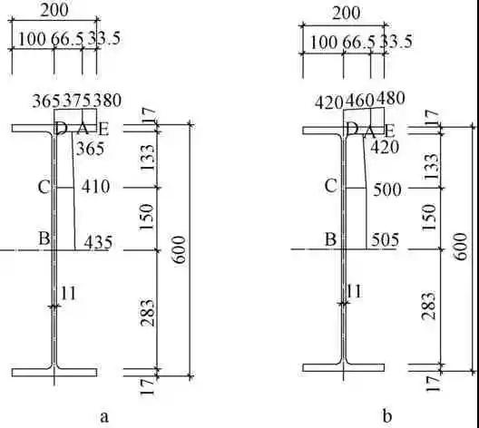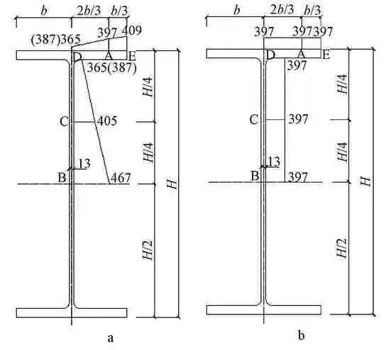 綜上所述,截面強度分布不同的H型鋼可取A點(即1/3翼緣寬度處)的屈服強度來表示全截面的整體強度。