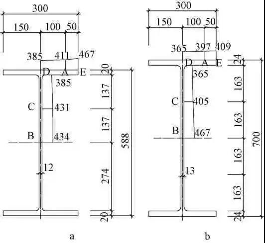 a—HM588×300×12×20;b—HN700×300×13×24。
