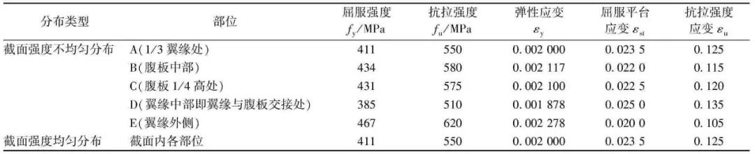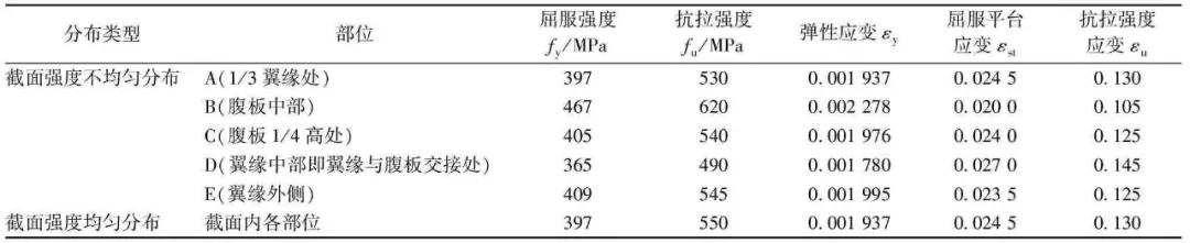 2.1 軋制H型鋼截面材料性能的不均勻性