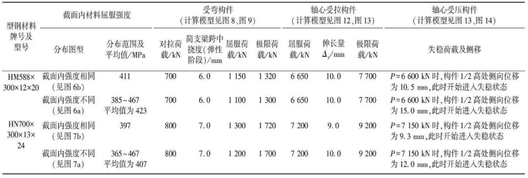2)經(jīng)測試和計算分析,H型鋼構(gòu)件的力學性能可按材料檢驗標準以1/3翼緣寬處的材性試驗值代表整個截面的性能,在結(jié)構(gòu)分析中可按均質(zhì)材料計算。
