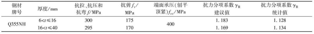 為了與GB 50017—2017中Q345鋼相應(yīng)厚度組設(shè)計強度協(xié)調(diào)匹配,本文建議Q355耐候鋼(H型鋼)的抗力分項系數(shù)取值如下: