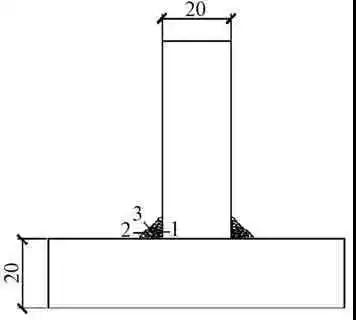 工藝評定采用鋼板T形角接接頭、平焊,接頭形式和焊接順序見圖22。