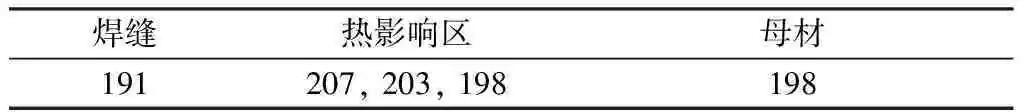 對試板采用硝酸酒精溶液腐蝕后進行硬度試驗,測得各部位的維氏硬度見表15。
