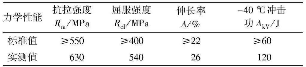 焊縫表面經(jīng)砂輪打磨,以化學漿糊為耦合劑,對工藝評定試板的焊縫進行了100%的超聲波探傷。依據(jù)GB 50661—2011,未發(fā)現(xiàn)超標缺陷,所檢焊縫全部合格(貼角焊縫合格標準為二級)。
