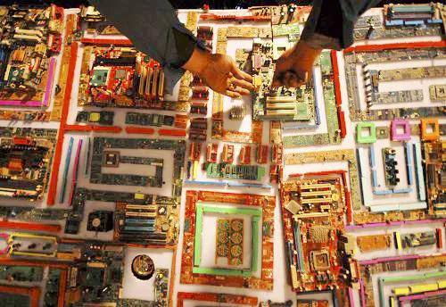 或廢舊電腦主板組成的墻體等