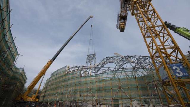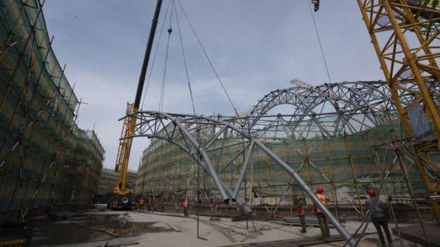 13時(shí),施工現(xiàn)場吊車揮舞著巨臂,懸吊著近十噸的鋼結(jié)構(gòu),在空中進(jìn)行拼接,平穩(wěn)對(duì)接后,站在鋼結(jié)構(gòu)上的十余名特種焊工立即進(jìn)行焊接,俯視而望,“大白鯨”的頭部線條已清晰可見。二期極地公園項(xiàng)目中的大白鯨雙曲面造型,具有很高的施工難度,在施工中,吊車要吊著三角錐形鋼結(jié)構(gòu)在空中完成所有拼接工作。一品鋼結(jié)構(gòu)輕的五六噸,重的超過十噸,高空進(jìn)行嚴(yán)絲合縫的對(duì)接比較困難,一般一兩天才能拼接一對(duì)。從今年3月26日正式復(fù)工以來,項(xiàng)目一直緊鑼密鼓建設(shè),力爭年底完工。